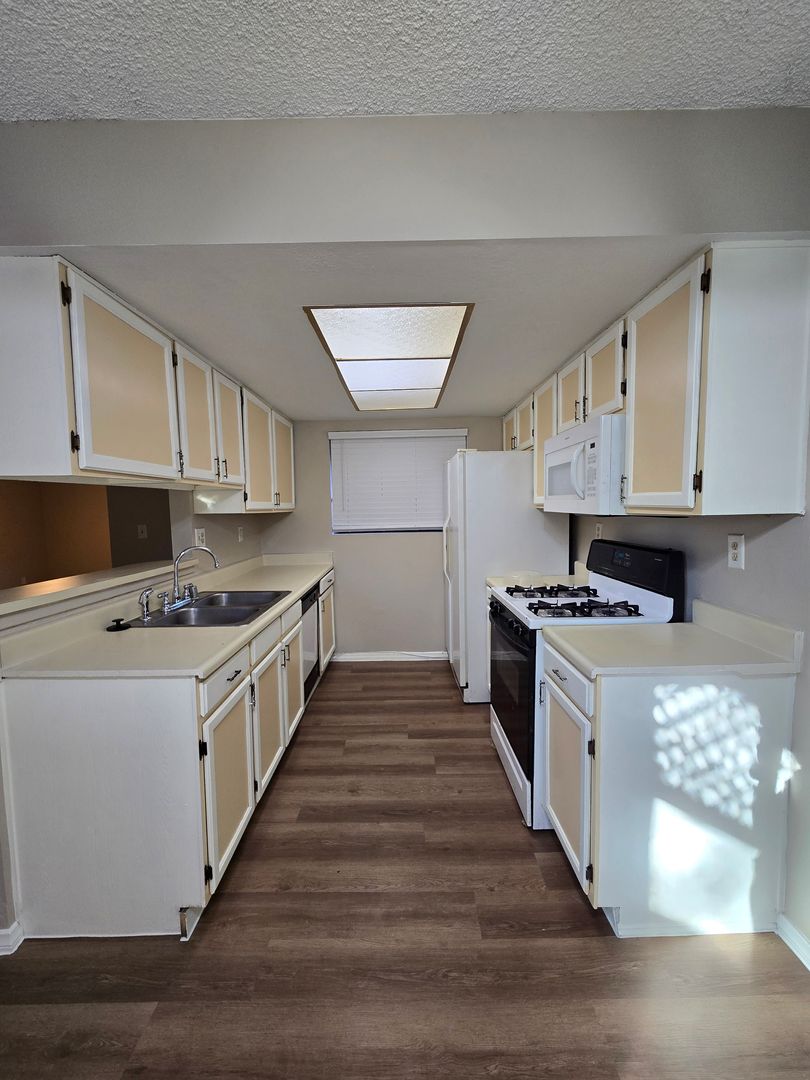 **** 2 WEEKS FREE RENT IF RENTED BY JANUARY 1, 2026 **** A beautifully appointed 2-bedroom, 2-bathroom single-story condo offering comfort, style, and an ideal central location. This spacious 942 sq. ft. residence is designed for easy, upscale living in a quiet, well-maintained community. The home welcomes you with a charming private front courtyard and features all-new luxury vinyl plank flooring throughout. Freshly painted in soft, neutral tones, the interior feels bright and modern. Ceiling fans enhance comfort in every room, and the kitchen comes fully equipped with all appliances. A full-size washer and dryer are conveniently located inside the unit. Residents enjoy access to a sparkling community pool and tennis courts, perfect for both relaxation and recreation. Centrally located and close to freeways, schools, and shopping, this home offers the perfect balance of convenience and tranquility.