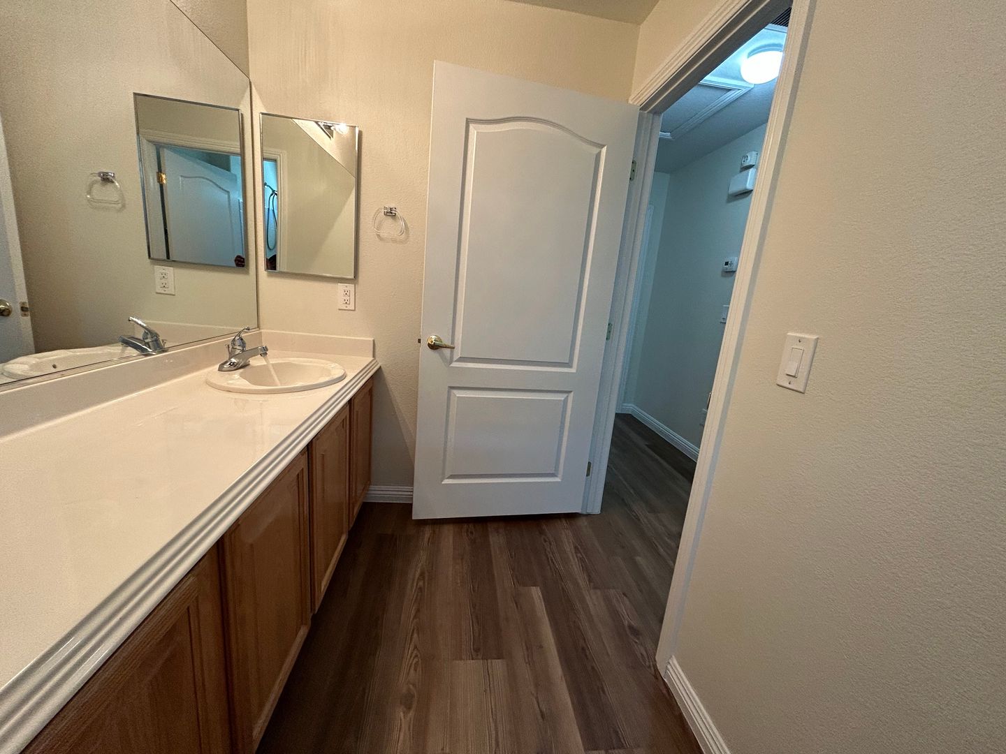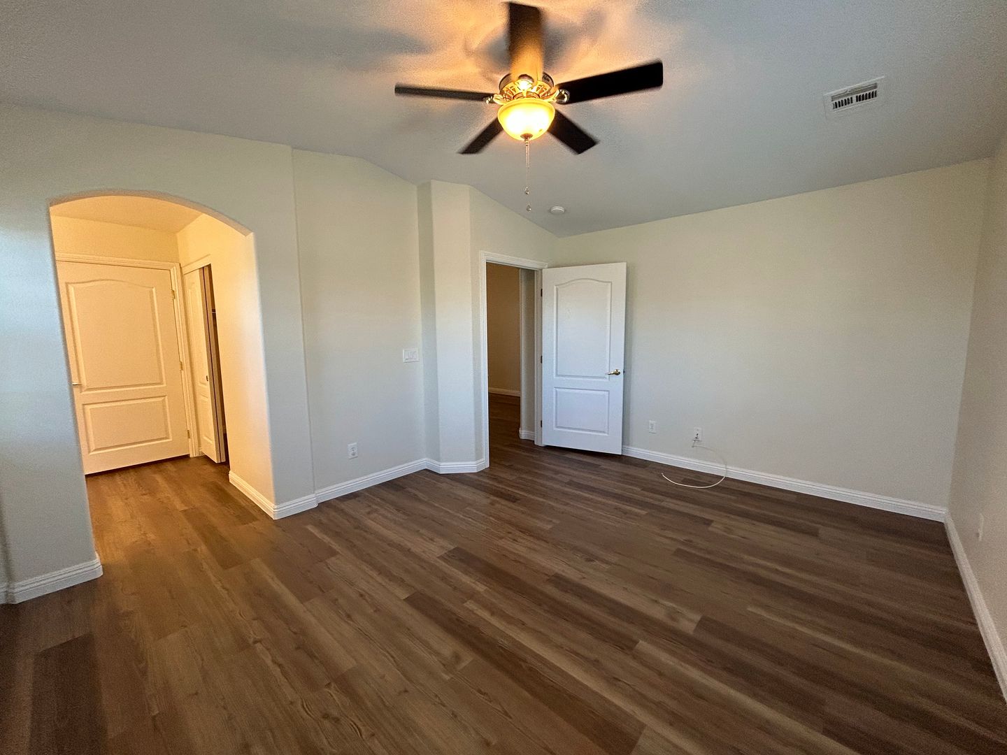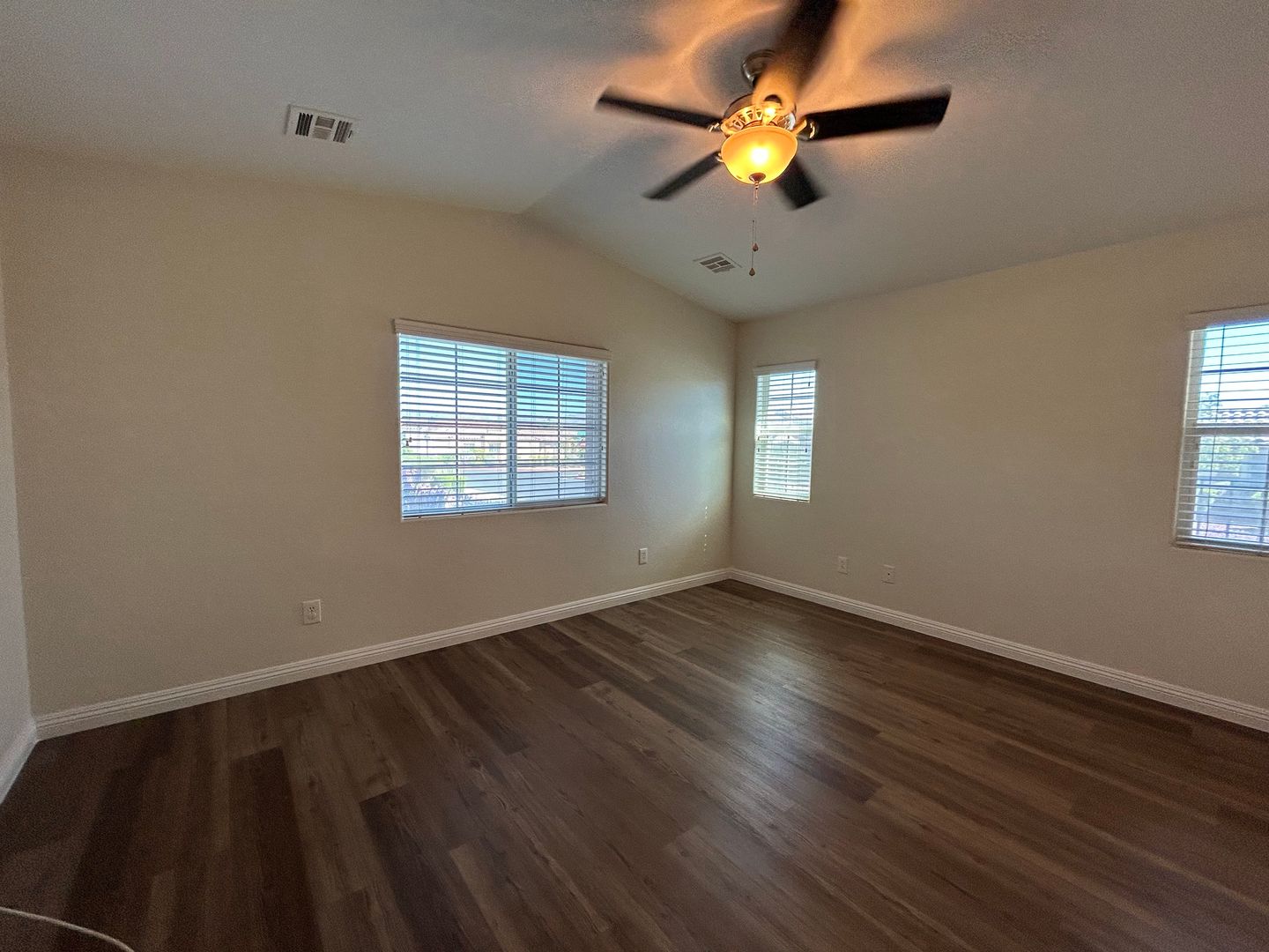 Welcome to this beautifully maintained 3-bedroom, 1.75-bath single-story townhome with a 2-car garage. This home features luxury vinyl plank flooring throughout and ceiling fans in every room for added comfort. The spacious kitchen offers solid surface countertops, stainless steel appliances, and plenty of room for cooking and gathering. The primary bedroom is separate from the secondary bedrooms, providing added privacy. Enjoy a low-maintenance back patio, perfect for relaxing. Don’t miss out