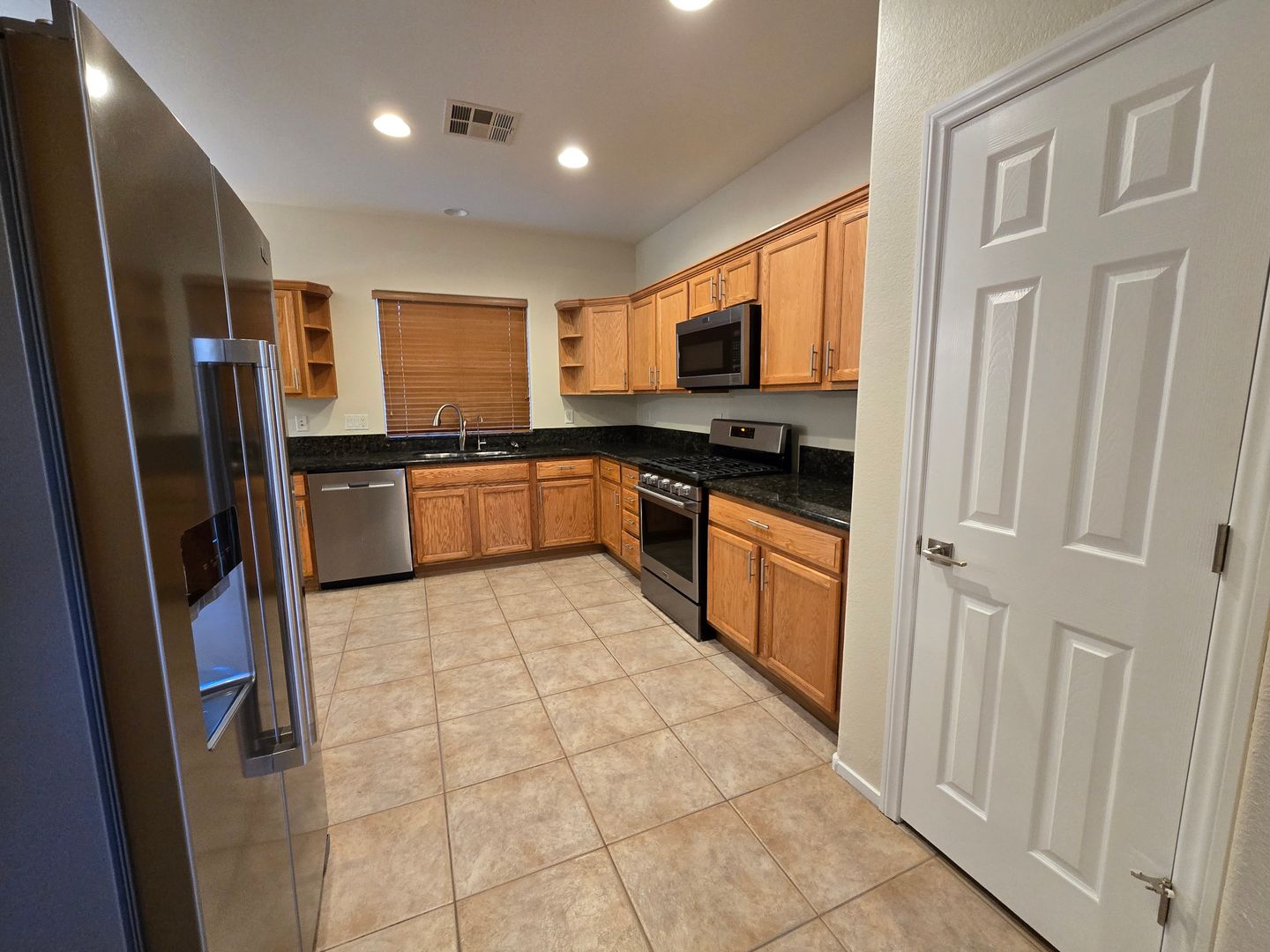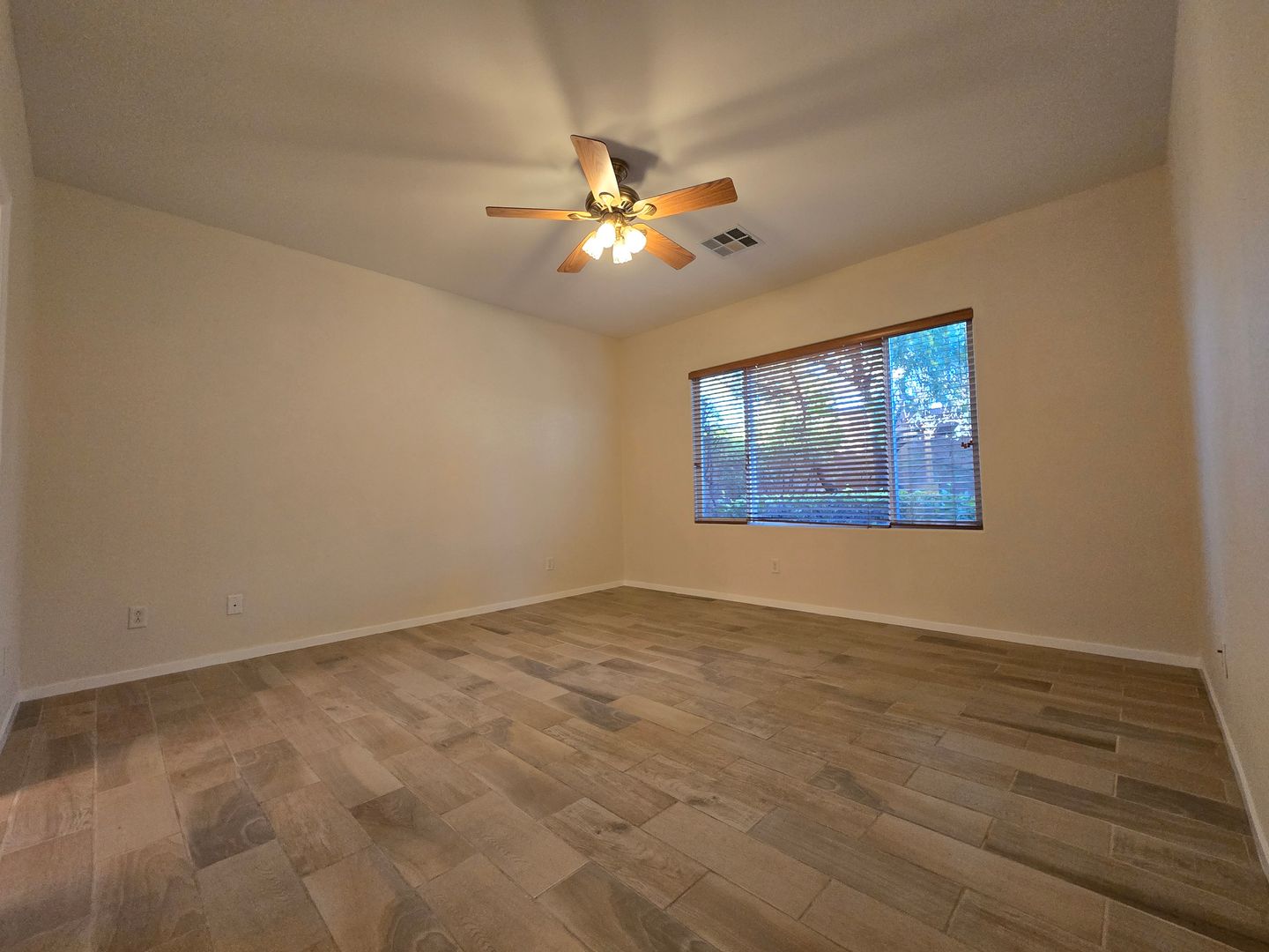 Experience comfortable, family-friendly living in this stunning single-story home located in the desirable Summerlin community. This three-bedroom, one and three-quarter bathroom home with a spacious two-car garage offers a welcoming blend of tile and carpet flooring, granite kitchen countertops, stainless steel appliances, and a custom closet in the primary bedroom. Ceiling fans throughout the home add year-round comfort. Step outside to enjoy the covered patio and a beautifully maintained backyard with mature trees and lush grass—an ideal space for relaxing or entertaining. The location provides easy access to major freeways, making commutes simple, and places you just minutes from Red Rock Canyon, the Summerlin Outlet Mall, and Costco.