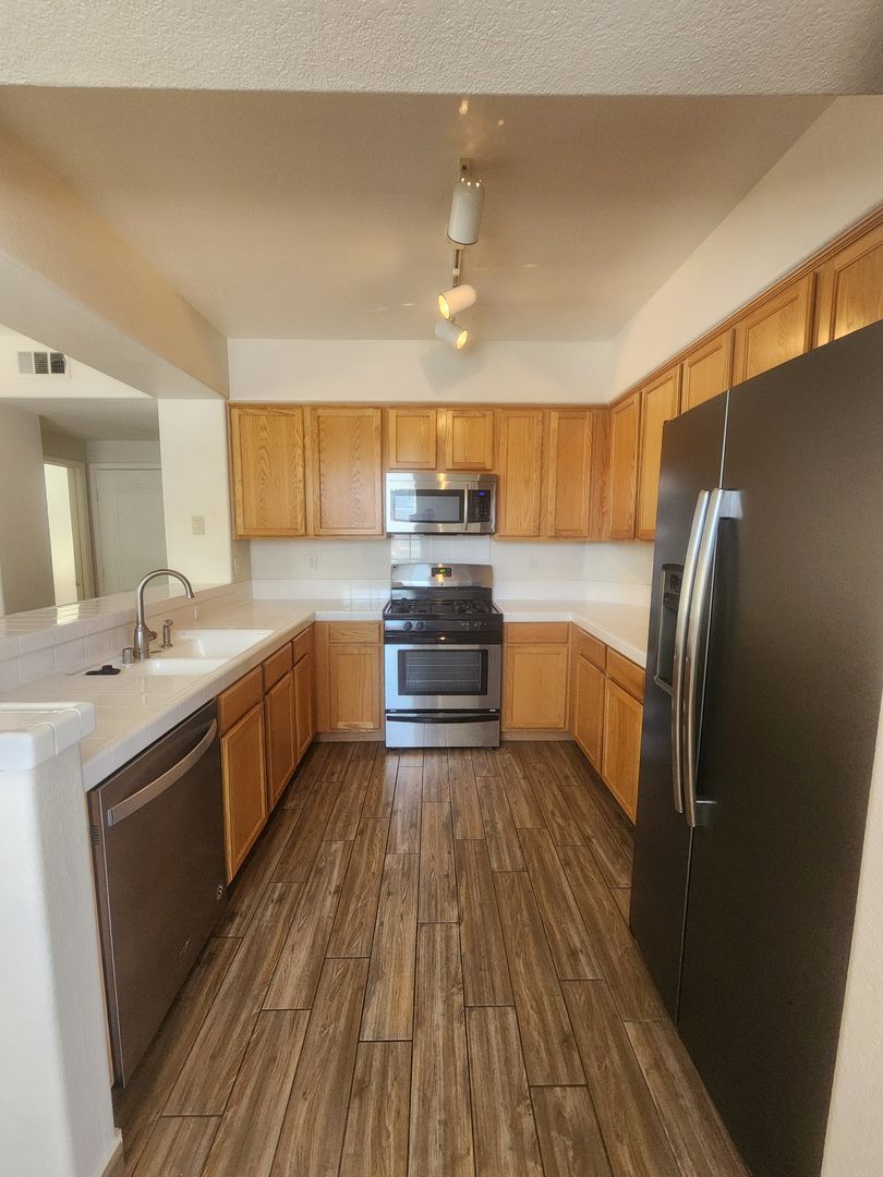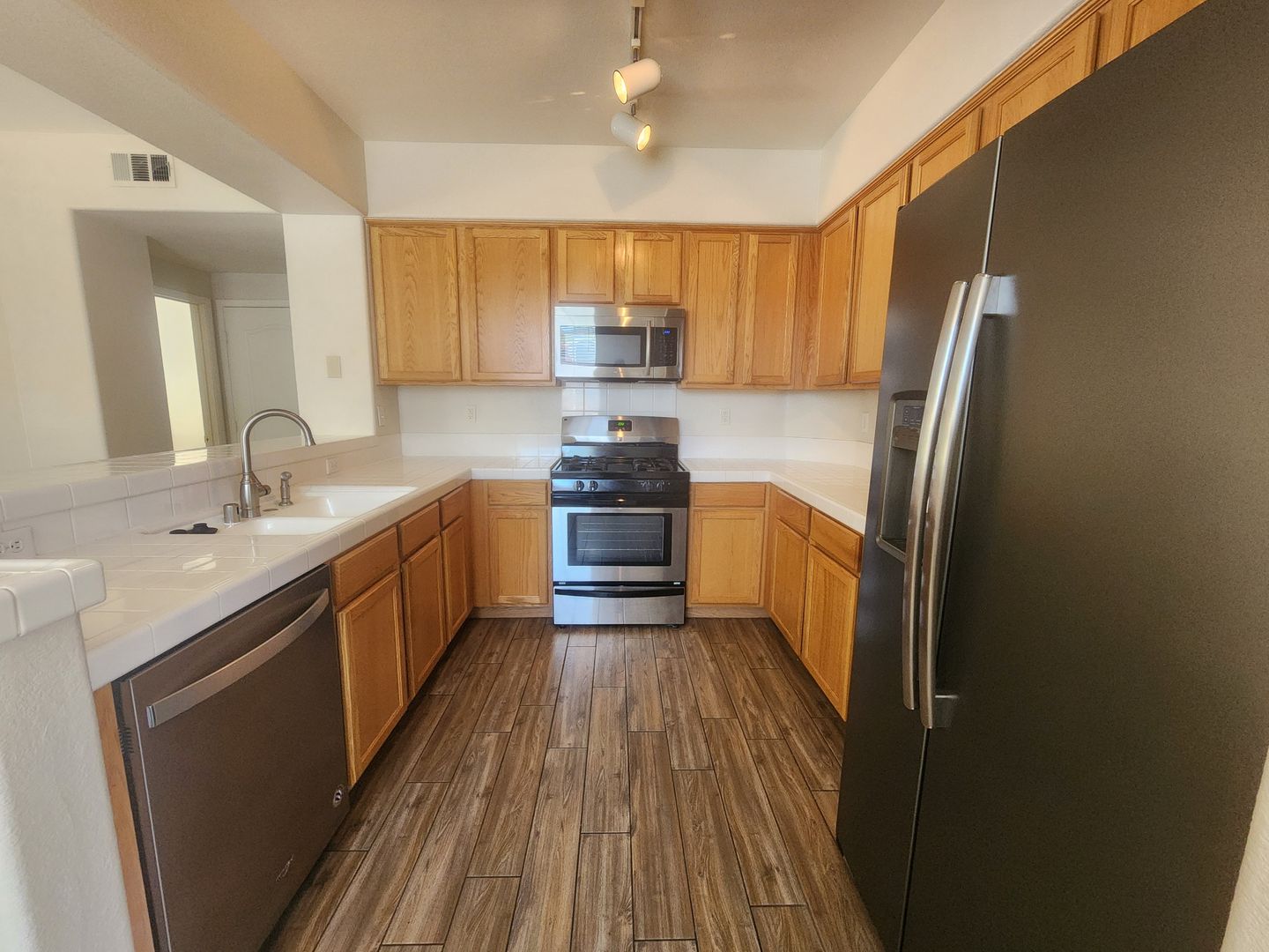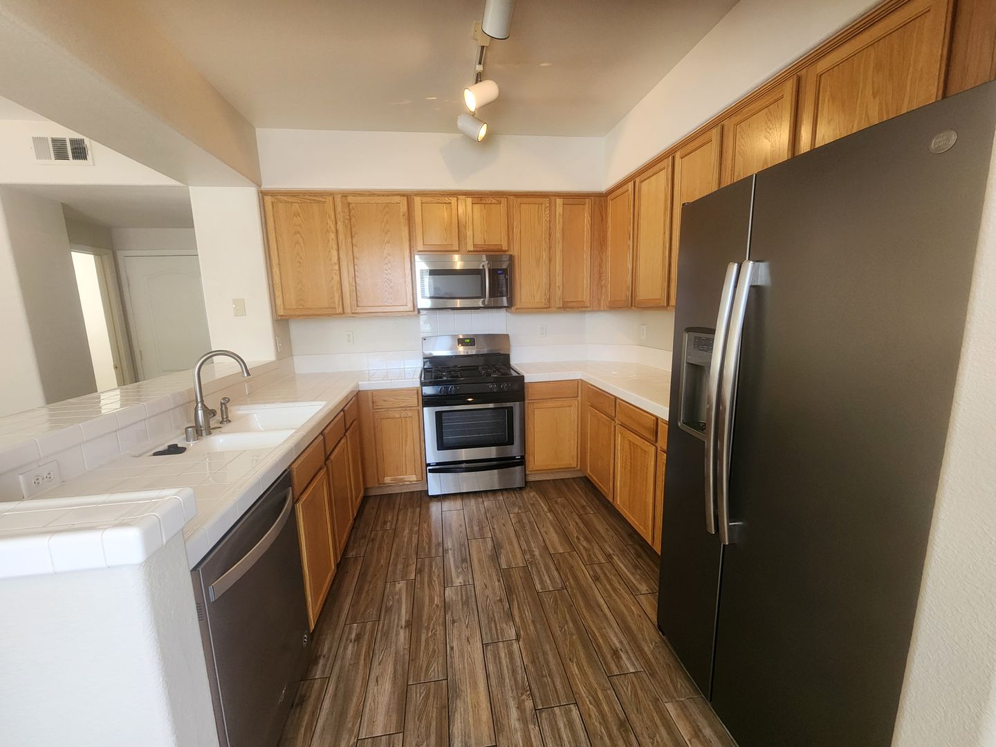 Fabulous 2-Bedroom, 2-Bathroom Condo with 2-Car Garage in the Heart of Summerlin! This spacious and well-maintained unit offers an open floor plan with beautiful tile flooring throughout the main living areas and plush carpeting in the bedrooms. The kitchen features all stainless steel appliances, a breakfast bar, and plenty of cabinet space—perfect for everyday living and entertaining. Both bedrooms are equipped with ceiling fans, and the large primary bedroom includes a private balcony and an en-suite bathroom with dual sinks. Enjoy the convenience of an attached 2-car garage with direct entry into the unit. Located in a desirable community that offers great amenities, including a pool, spa, and exercise room. Don’t miss this opportunity to live in one of Summerlin’s most sought-after locations—schedule your showing today!