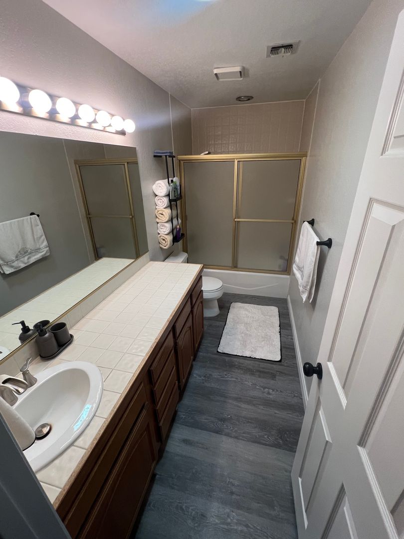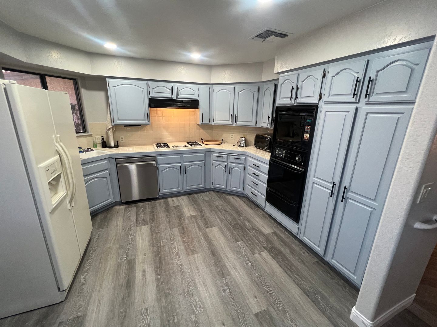 This beautifully maintained 2-Bedroom, 2-Bathroom, 2-Car Garage fully furnished townhome offers comfort and convenience with thoughtful upgrades throughout. Luxury vinyl plank flooring extends through every room, including all wet areas, combining durability with modern style. The open-concept family room flows seamlessly into the kitchen, which features tile countertops and comes complete with all appliances. From the living and dining areas, enjoy views of a lovely grassy outdoor space that adds a sense of relaxation and openness. The spacious two-car garage provides added convenience, and the single-story floor plan ensures easy living.