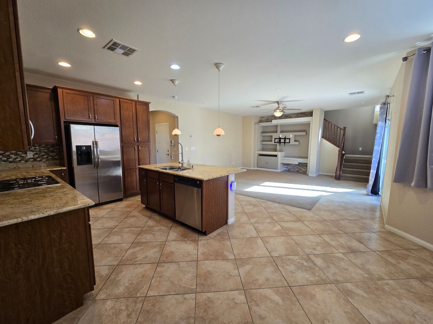 Take a look at this amazing 3-bedroom, 2.5-bath, two-story home with a 2-car garage—packed with upgrades and great living space. The home features tile and carpet flooring throughout, stainless steel kitchen appliances, and an island with granite countertops. You’ll love the open layout with a comfortable family room/kitchen combo, and the family room includes a built-in bookcase/entertainment center. Upstairs, you’ll find a large loft that can be used as an additional living area, game room, or home office. The spacious primary bedroom features a ceiling fan/light and a custom walk-in closet. Out back, enjoy a patio and a low-maintenance backyard that’s perfect for entertaining, relaxing, or pets.