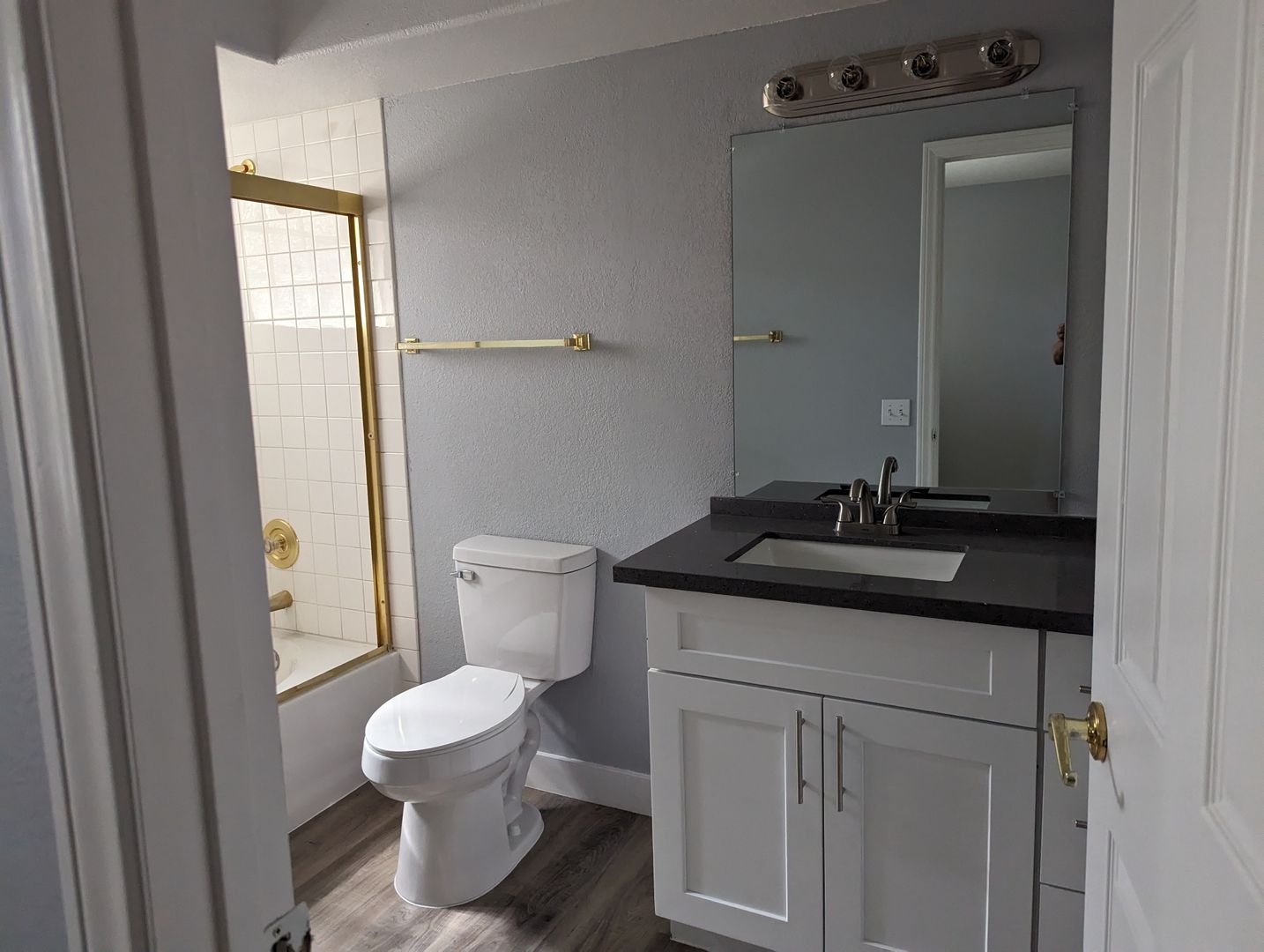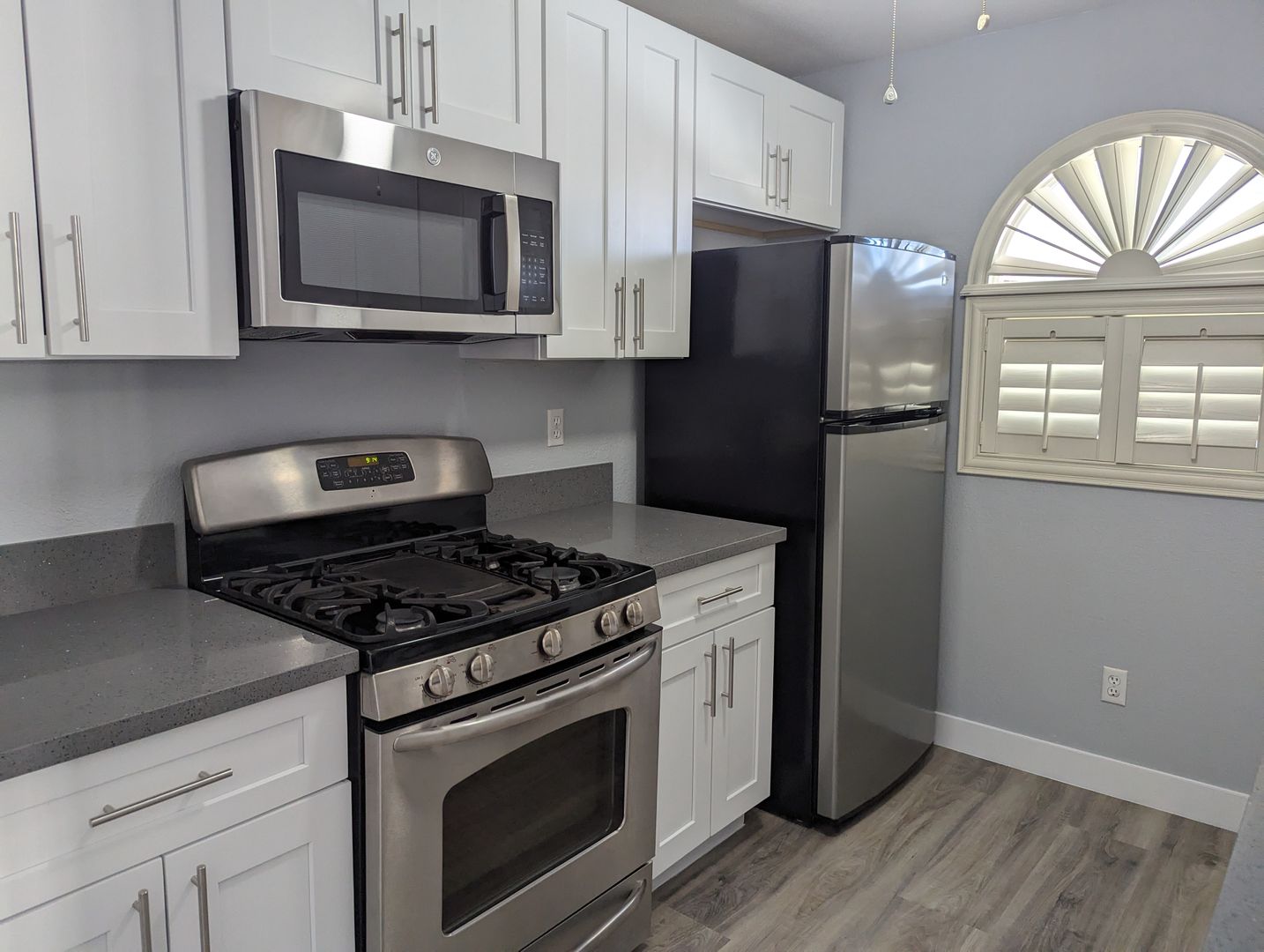 Welcome home to this beautifully updated upstairs unit located in a quiet and peaceful community. This 2-bedroom, 2-bathroom home has been recently refreshed and features luxury vinyl plank flooring throughout, new quartz countertops, fresh interior paint, and stainless steel appliances. Venetian shutters and ceiling fans are installed throughout the home, adding both comfort and style. The living room includes a cozy fireplace, perfect for relaxing evenings. The unit includes one assigned parking space, along with additional open parking available throughout the community. Residents also enjoy access to a community pool, making this a wonderful place to call home. Pets are welcome with a refundable deposit.