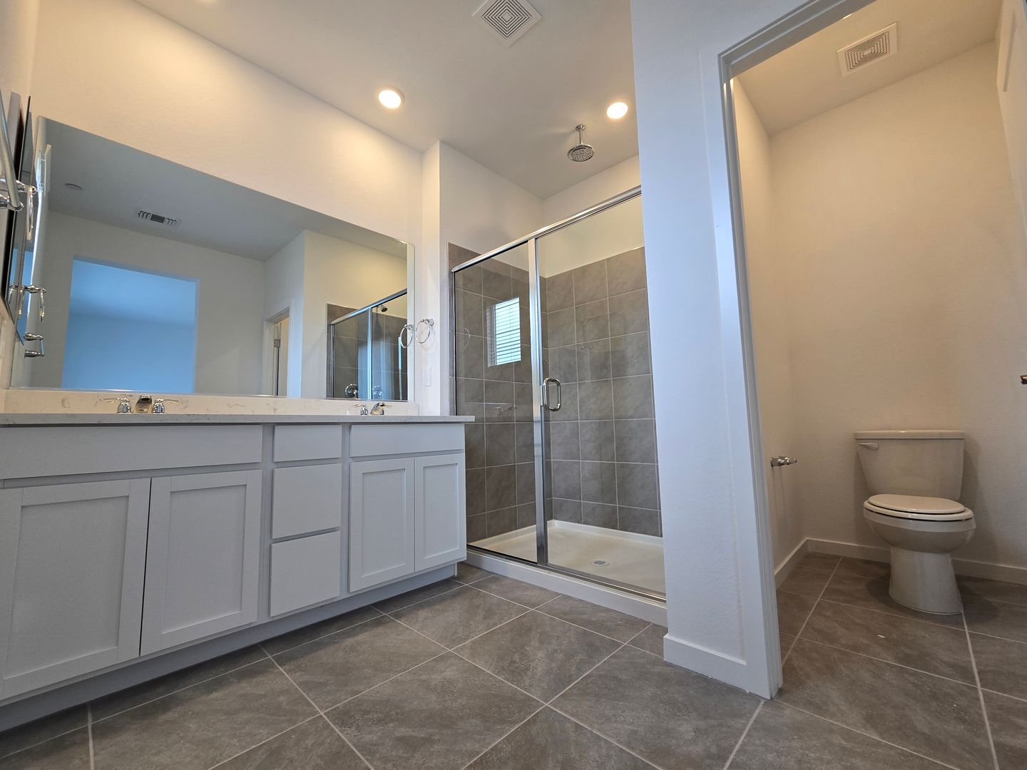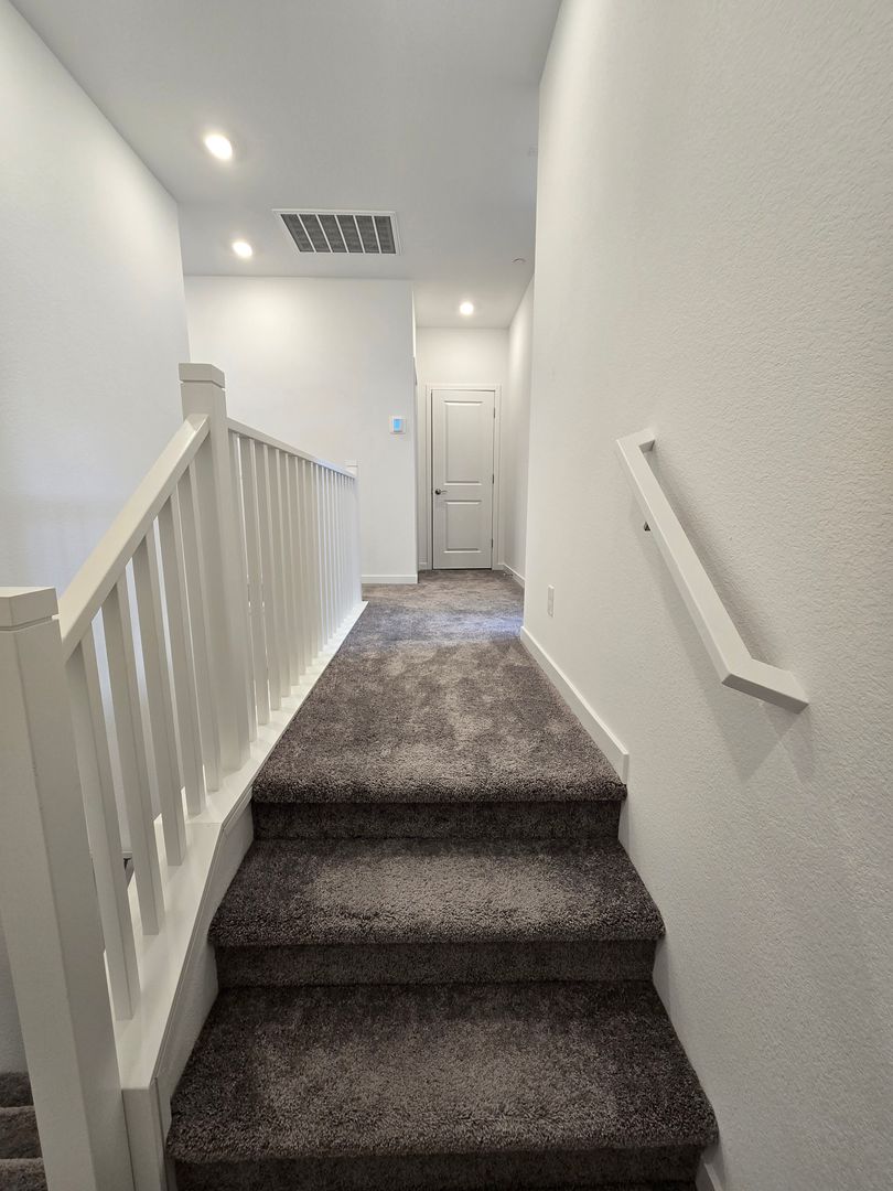 This stunning home is located in the beautiful Summerlin community. It features 3 bedrooms, 2.5 bathrooms, and a 2-car garage. The home boasts tile flooring throughout the downstairs and in all wet areas, with cozy carpet flooring on the stairs and in the bedrooms. The spacious layout includes a large family room, kitchen, and dining room combo—perfect for entertaining. The kitchen comes fully equipped with all stainless steel appliances. Upstairs, you'll find all the bedrooms, with the primary bedroom set apart from the others and featuring its own private balcony. The laundry room is conveniently located upstairs as well. This home is a MUST SEE!