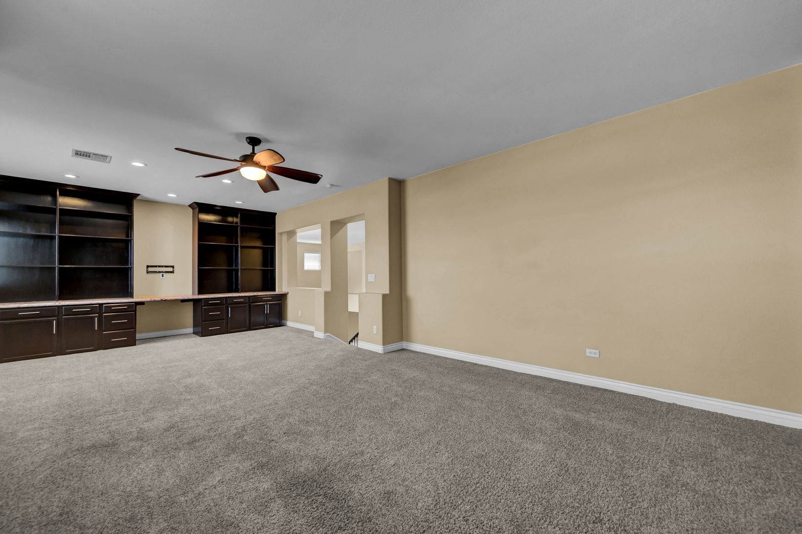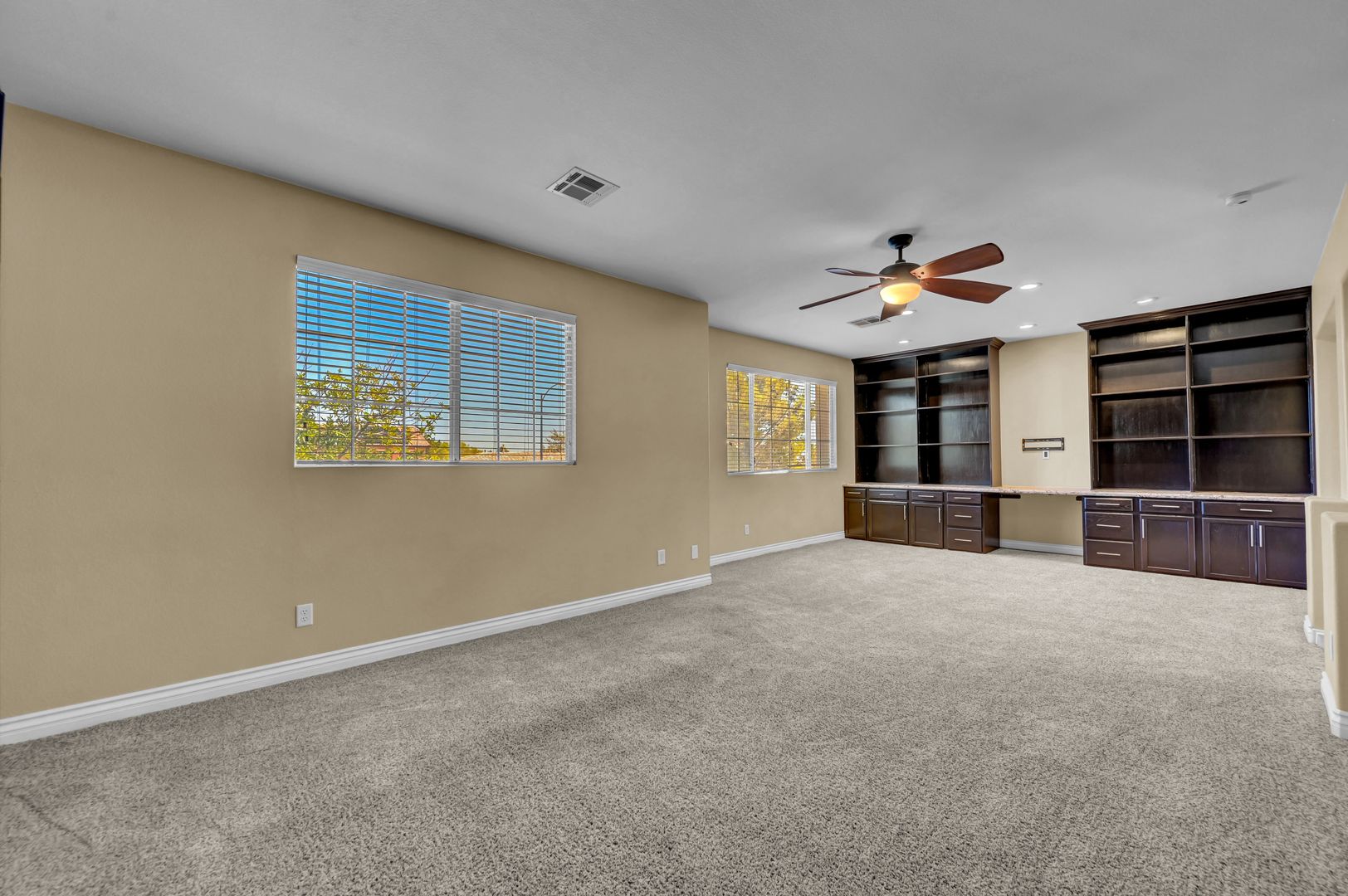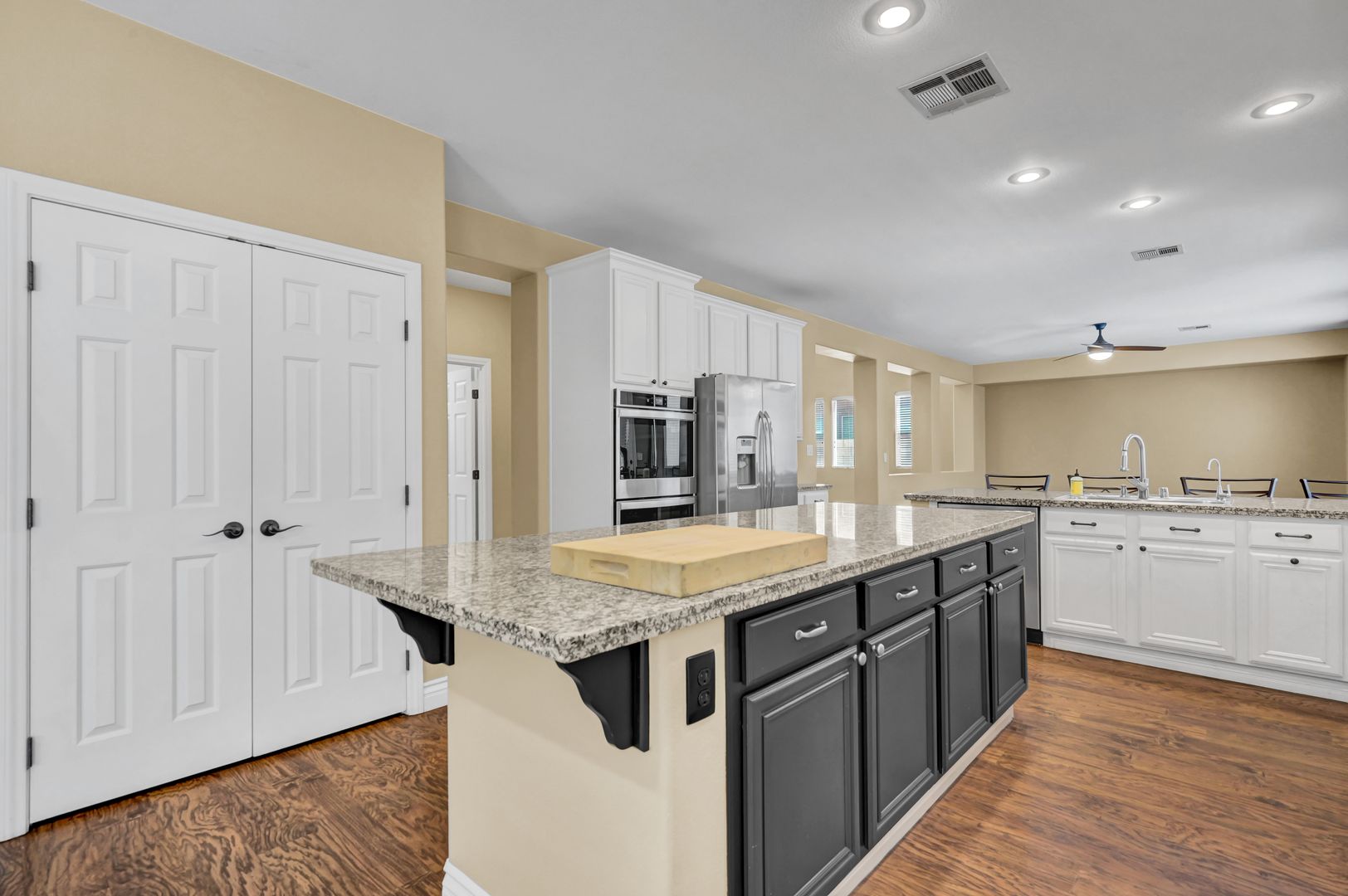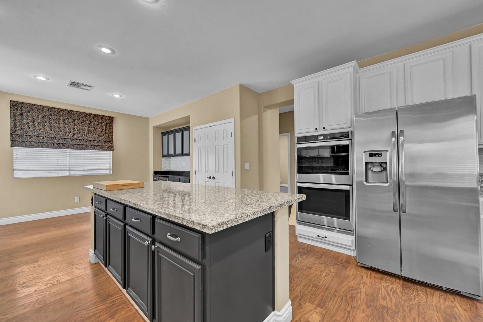TWO WEEKS FREE before 11/1/2025. Entering the Fabulous property, you will find the formal living and dining room. As you make your way in, you will also find the Spacious family room that is open to the highly upgraded kitchen and eating nook that features: a Large island with granite countertops, Stainless Steel appliances, and plenty of cabinetry space. Laminate wood-like flooring throughout the downstairs, and Carpet upstairs and into the bedrooms. As you walk throughout the downstairs, you will run into the downstairs bedroom and the downstairs bathroom with a shower.  Making your way up the stairs, you will get to a humongous loft with an office space with a media center on one side and a fabulous reading area with bookshelves on the other side. The massive primary bedroom with a primary bathroom with a separate shower and Tub. You will also see the spacious second and third bedrooms. A Covered patio in the back with a sparkling pool.