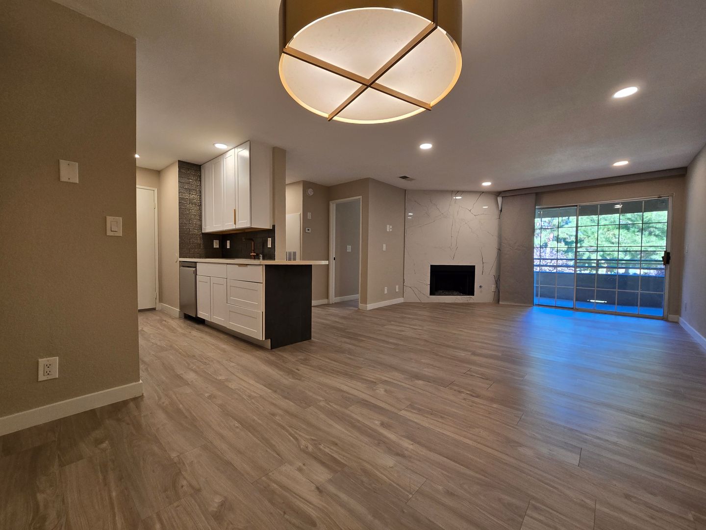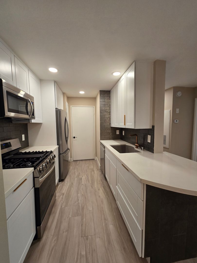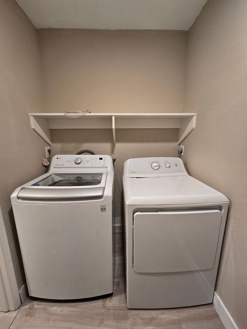 Step into this beautifully upgraded upstairs unit with an open floor plan designed for both comfort and style. The home features laminate wood-like flooring throughout, with tile in both bathrooms. Freshly painted and move-in ready, this unit offers a large living room with a cozy fireplace and a striking designer tile wall that opens onto a private balcony—perfect for enjoying a peaceful evening breeze. There are two spacious primary bedrooms, each with its own bathroom. Both bathrooms include walk-in showers and tastefully designed vanities, giving each room a sense of privacy and sophistication. The kitchen has been highly upgraded with stainless steel appliances, a modern backsplash, and plenty of cabinet space for storage and convenience. A washer and dryer are located inside the unit for added ease. With its stylish finishes, open layout, and thoughtful upgrades throughout, A MUST-SEE!!!