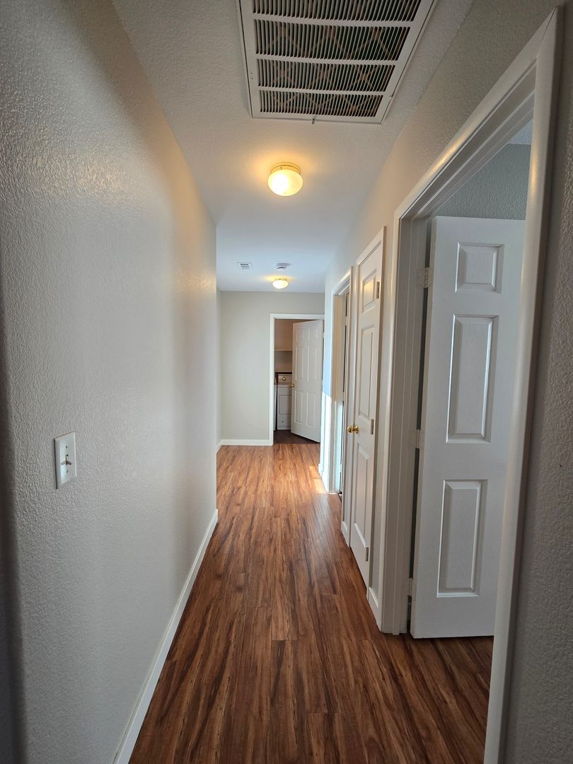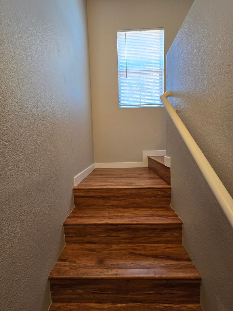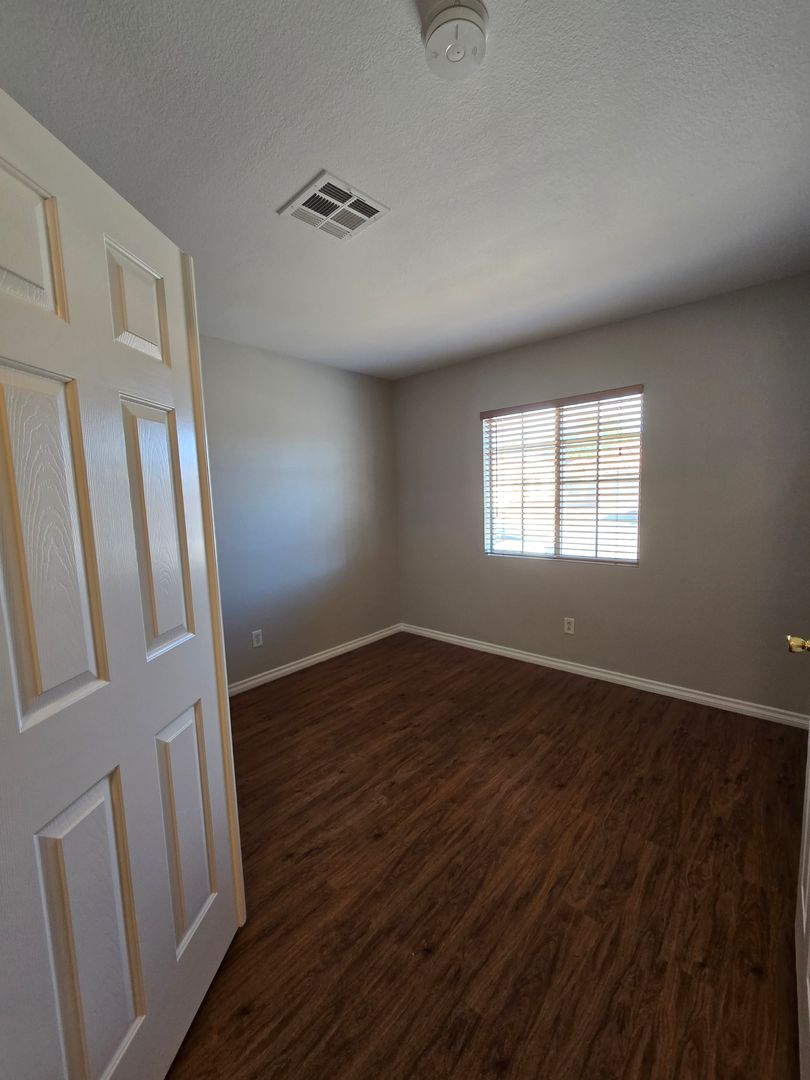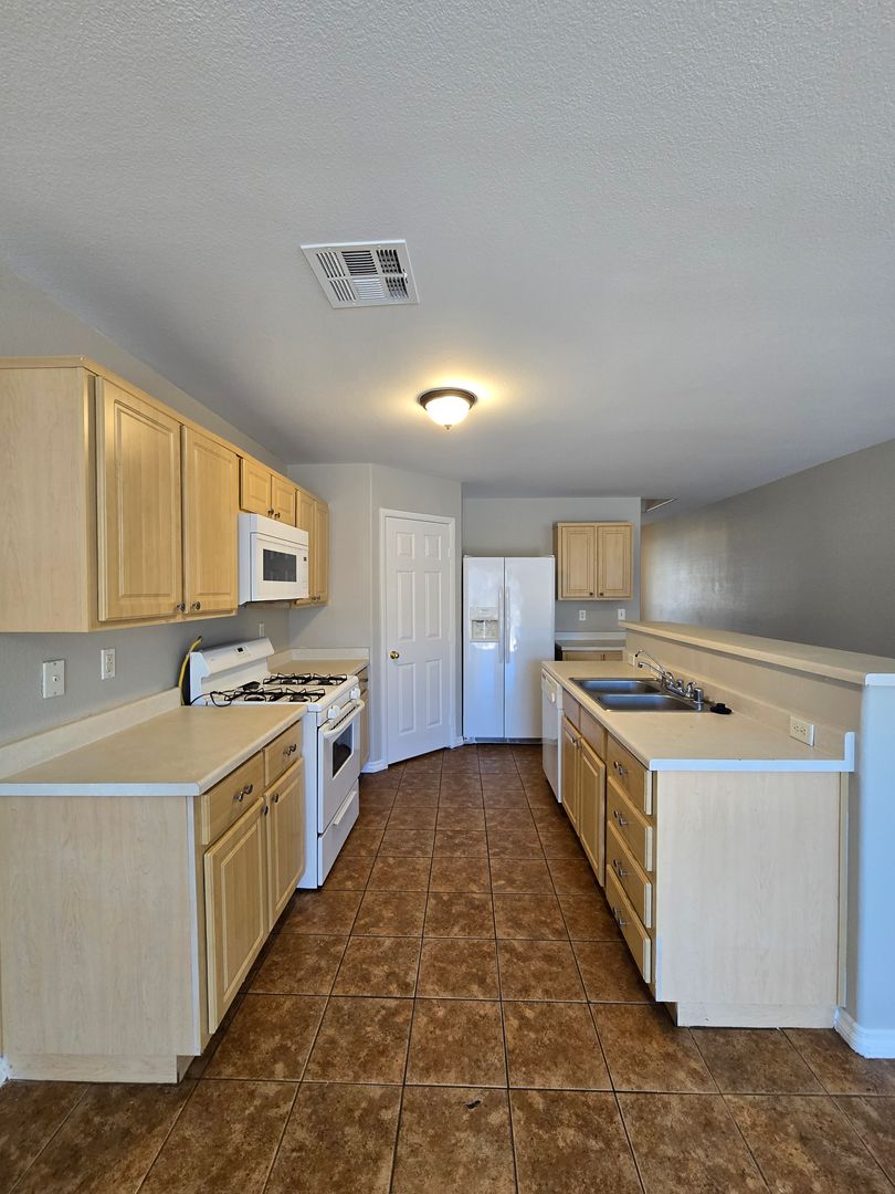 A stunning 4-bedroom, 2.5-bathroom home with a 3-car tandem garage, featuring one bedroom conveniently located downstairs. The home offers tile and wood-like laminate flooring throughout, creating a clean and modern feel. The kitchen includes a center island with a breakfast bar, a walk-in pantry, and all appliances are included. Upstairs, you’ll find a spacious loft along with a large primary bedroom featuring a walk-in closet. The primary bathroom offers a relaxing jacuzzi tub with a shower combo. The two additional upstairs bedrooms are generously sized and thoughtfully separated for added privacy. The property also boasts a large backyard, perfect for outdoor enjoyment.