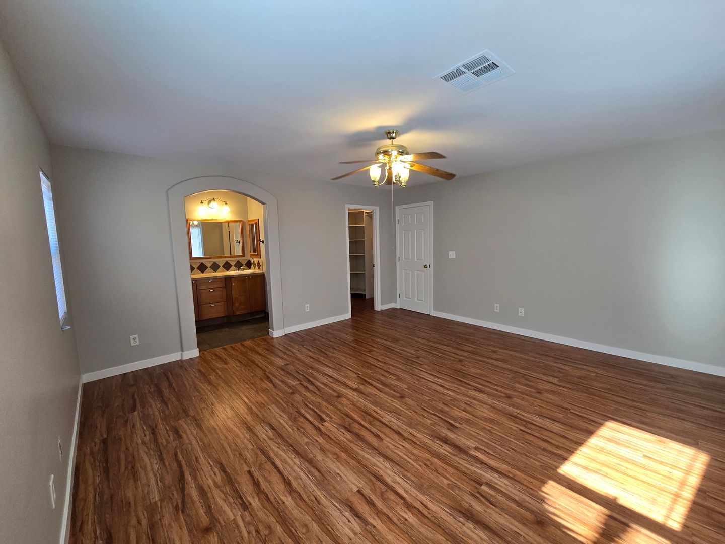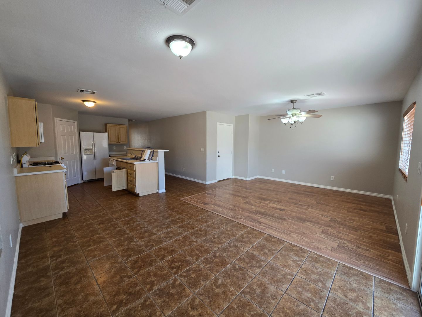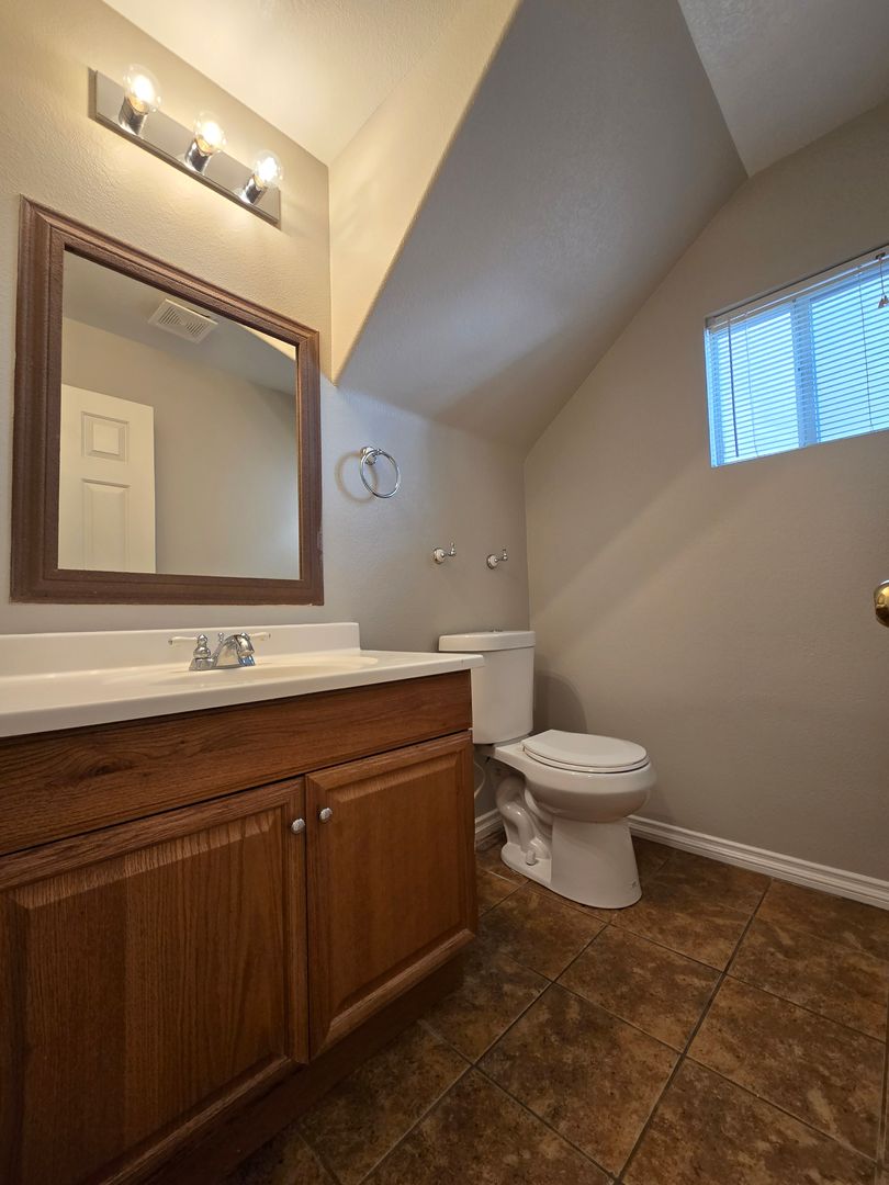 A stunning 4-bedroom, 2.5-bathroom home with a 3-car tandem garage, featuring one bedroom conveniently located downstairs. The home offers tile and wood-like laminate flooring throughout, creating a clean and modern feel. The kitchen includes a center island with a breakfast bar, a walk-in pantry, and all appliances are included. Upstairs, you’ll find a spacious loft along with a large primary bedroom featuring a walk-in closet. The primary bathroom offers a relaxing jacuzzi tub with a shower combo. The two additional upstairs bedrooms are generously sized and thoughtfully separated for added privacy. The property also boasts a large backyard, perfect for outdoor enjoyment.